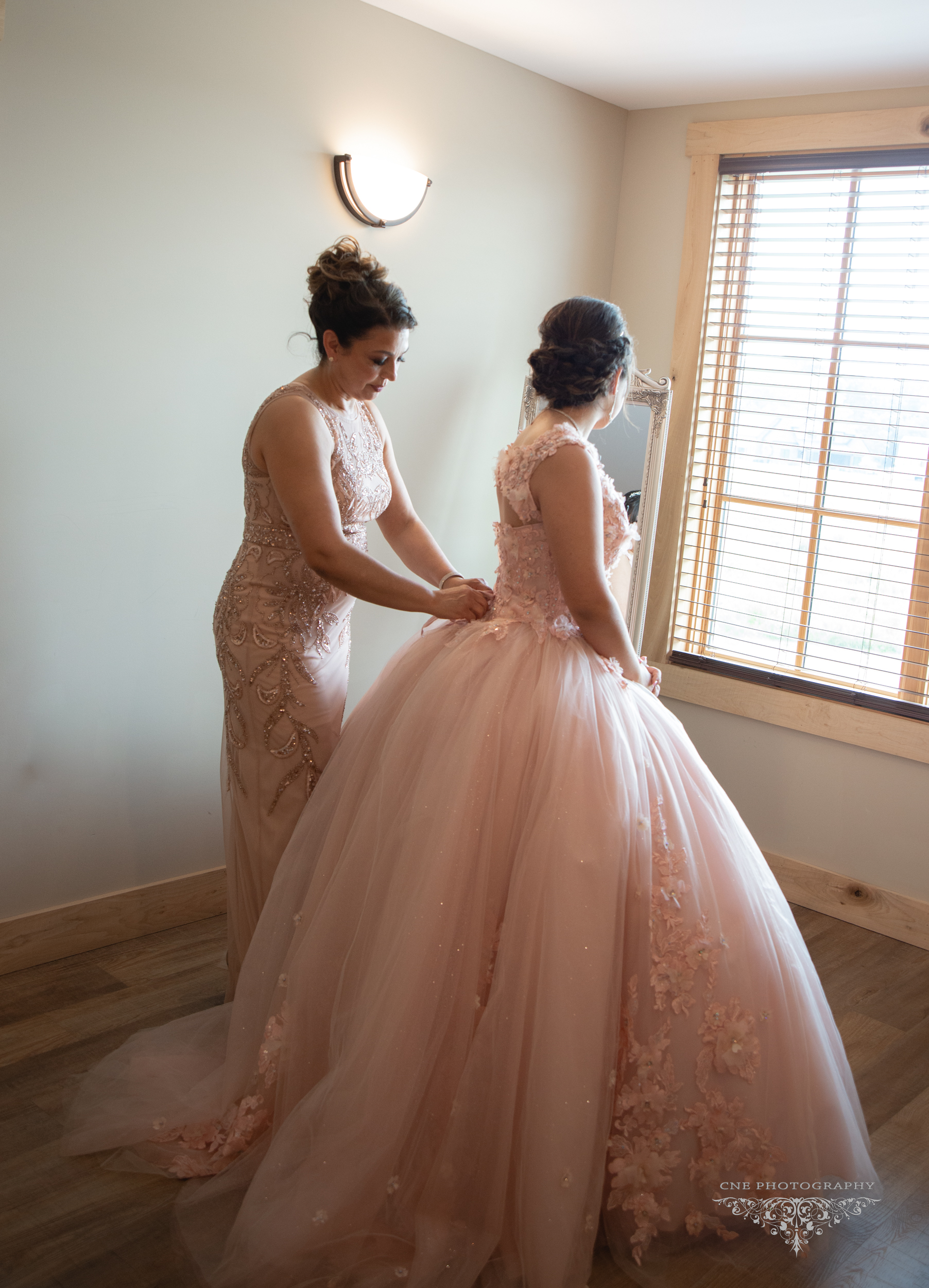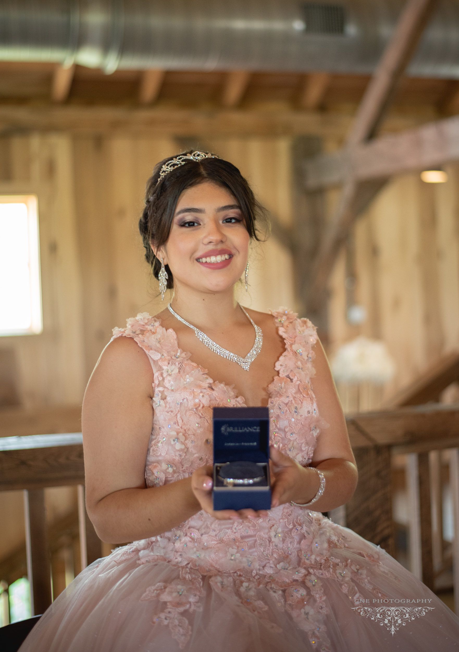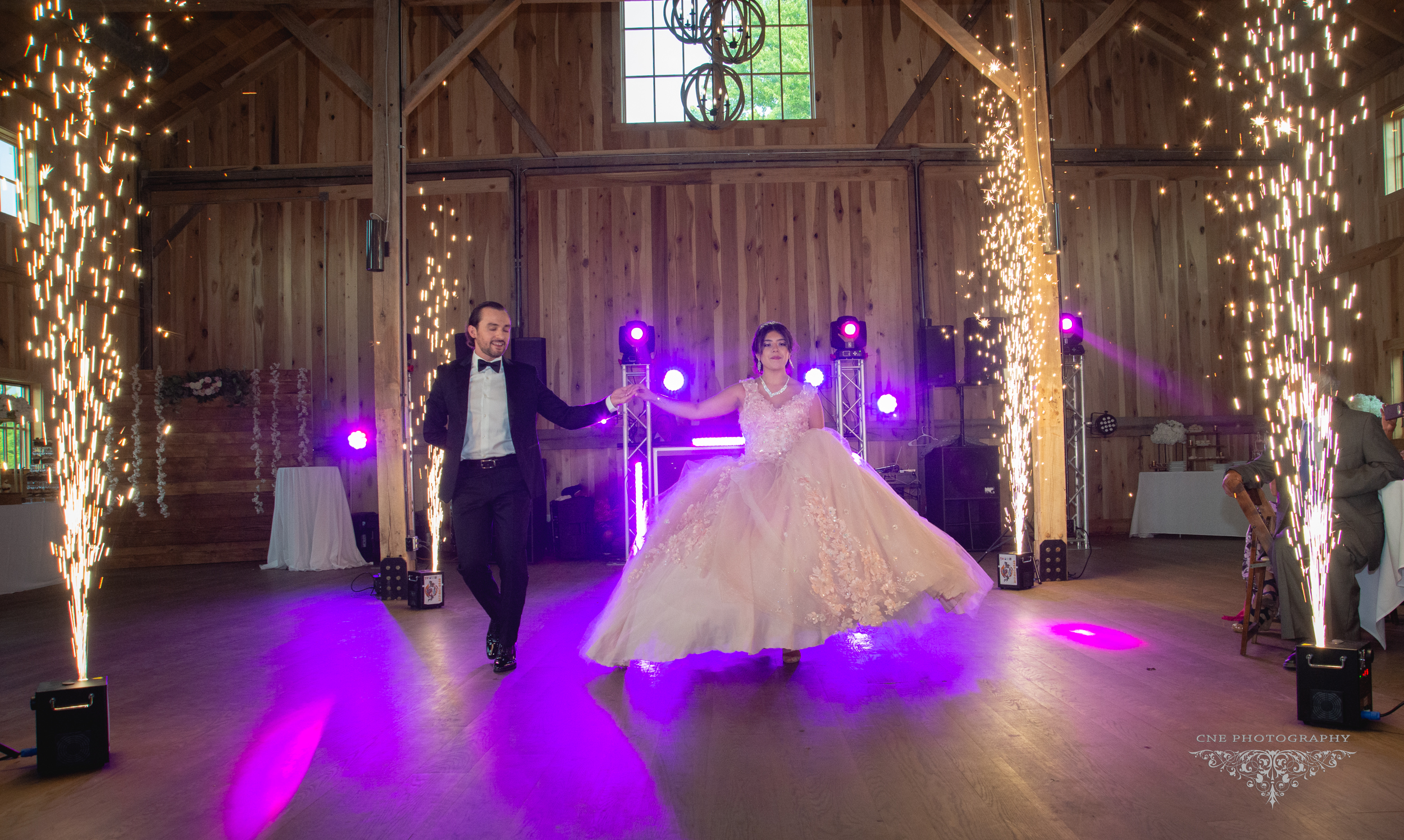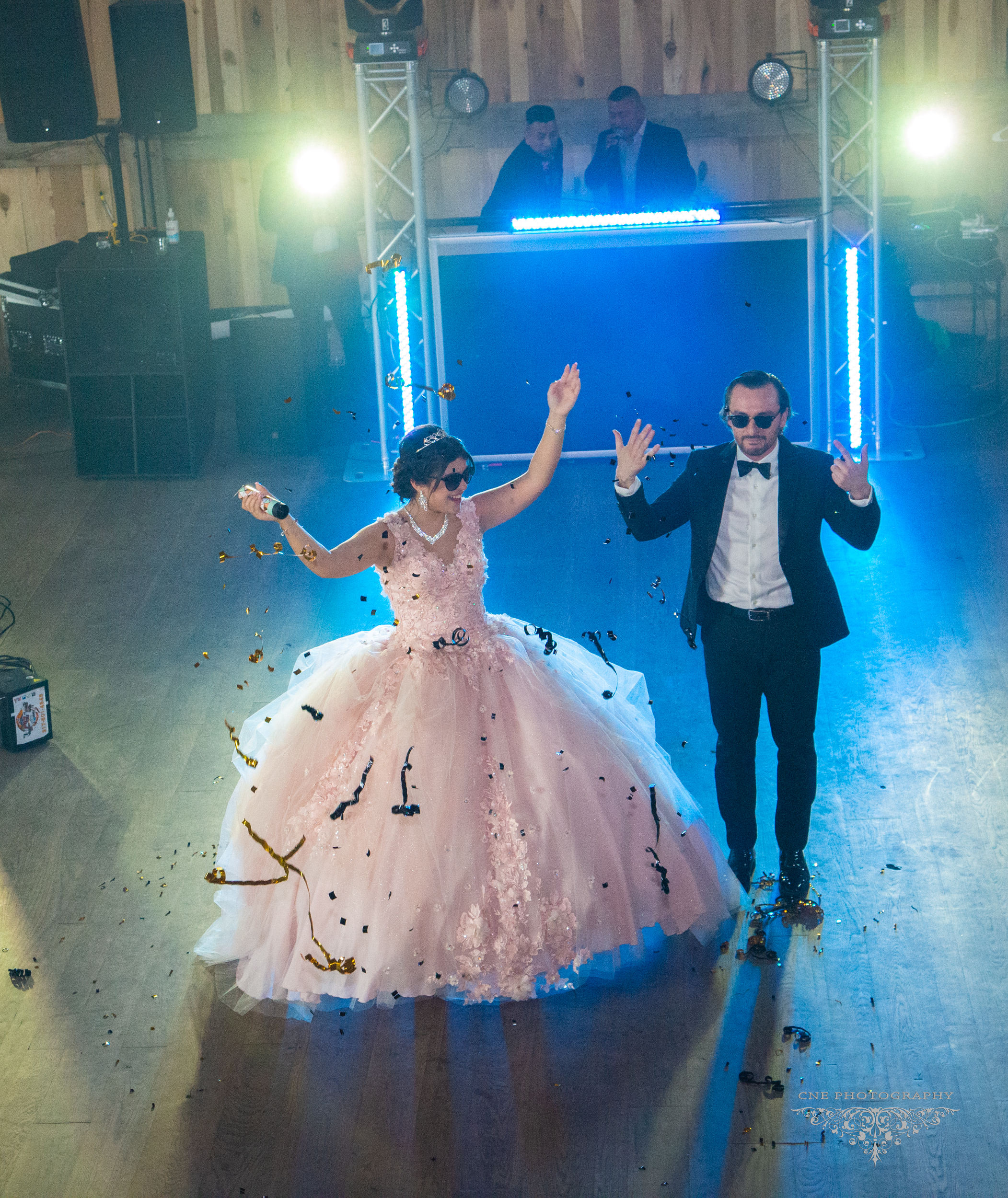 The party I recently photographed was held in a beautiful barn venue called Ritz Charles Lindley farmstead at chatham-hills which added to the charm and elegance of the event. The decorations were a beautiful mix of pink pastel flowers that matched the Quinceañera’s dress perfectly; the whole venue was beautifully lit with warm, soft lighting. The Quinceañera looked absolutely stunning in her dress, and her joy and happiness was contagious. The party was filled with family and friends, all there to celebrate this special occasion with her.
